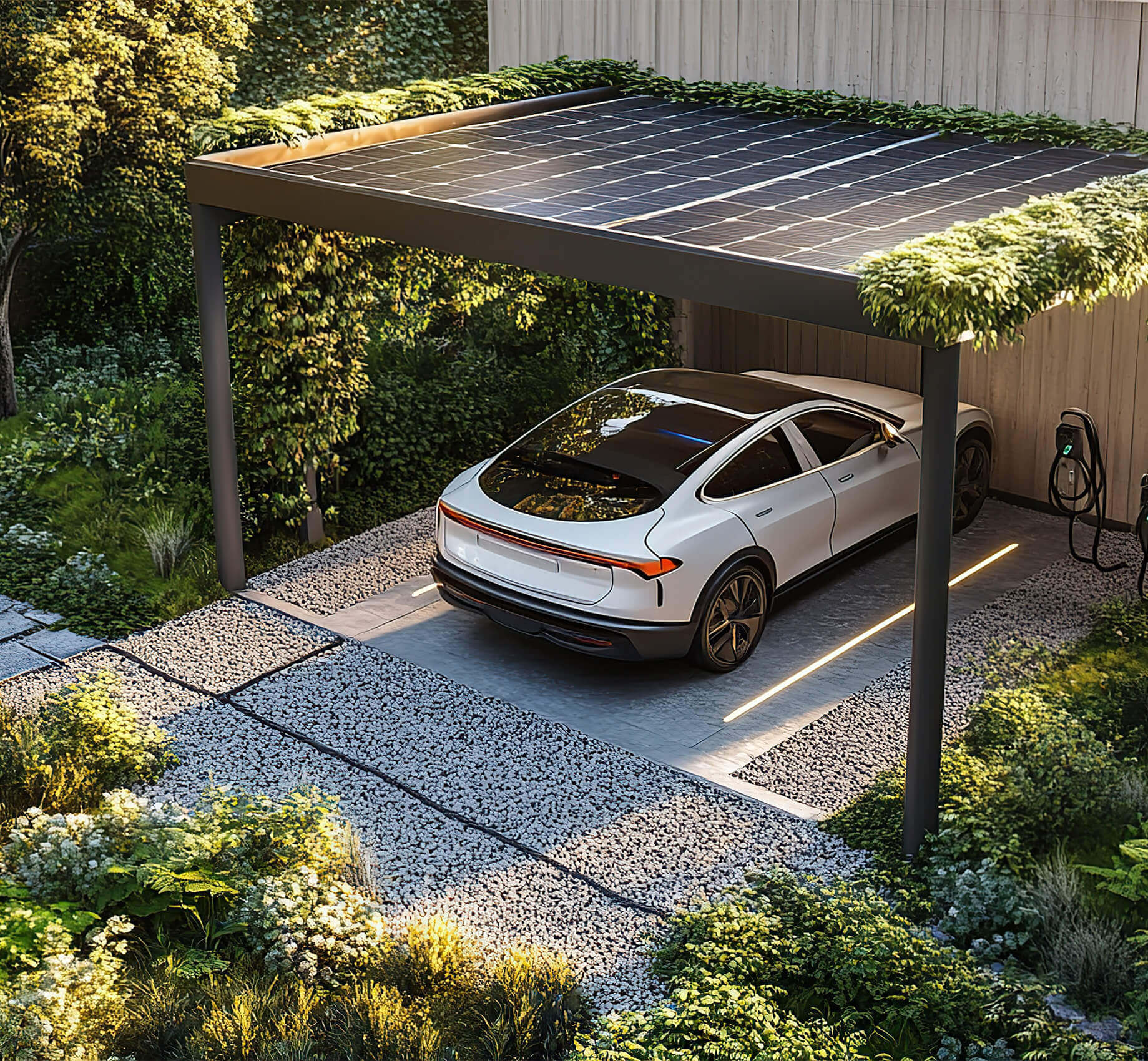 太陽光でつくった電気を、電気自動車の充電にも活用。
